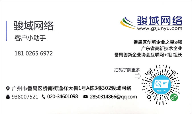 廣州駿域網(wǎng)絡(luò)科技有限公司成立于2005年,是一支由眾多具有多年實(shí)踐經(jīng)驗(yàn)的專(zhuān)業(yè)人士組成的高新技術(shù)團(tuán)隊(duì),專(zhuān)為企業(yè)提供網(wǎng)站建設(shè)、全網(wǎng)營(yíng)銷(xiāo)、郵箱等服務(wù),我們擁有嚴(yán)謹(jǐn)?shù)某绦蜷_(kāi)發(fā)人員、專(zhuān)業(yè)的美工設(shè)計(jì)、隨時(shí)為您效勞的售后服務(wù)人員,團(tuán)隊(duì)人數(shù)達(dá)一百多人。目前我們已經(jīng)榮幸的為廣州眾多知名企業(yè)提供了包括網(wǎng)站建設(shè)、手機(jī)網(wǎng)站、小程序、企業(yè)軟件開(kāi)發(fā)等多種基于互聯(lián)網(wǎng)技術(shù)的服務(wù)。 通過(guò)長(zhǎng)期積累,駿域網(wǎng)絡(luò)目前已經(jīng)擁有50000多家客戶。